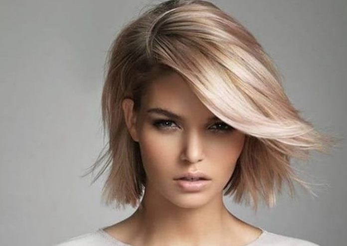 Aceasta este o clasa de master in designul culorii parului, cu balayage perfect judecat intr-un bob pana la barbie. Exista cel putin 5 nuante diferite de blond incluse in acest design elegant de culoare a parului blond miere. Si variaza de la tonuri calde, maro deschis pana la blond pal, neutru si albastru cenusa pe partile laterale. Luat impreuna cu frumosul bob inversat pentru par fin, rezultatul este o coafura scurta super sic, cu un finisaj ciufulit la moda.